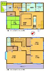LDK13.2畳(1F)、和5.4畳(1F)、洋5.4畳(2F)、洋5.4畳(2F)、洋8.1畳(2F) |